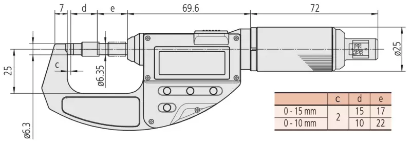 Absolute Digital Mic., Adjust. Force QuickMike, 0-15mm, 0,5-2,5N 227-201-20