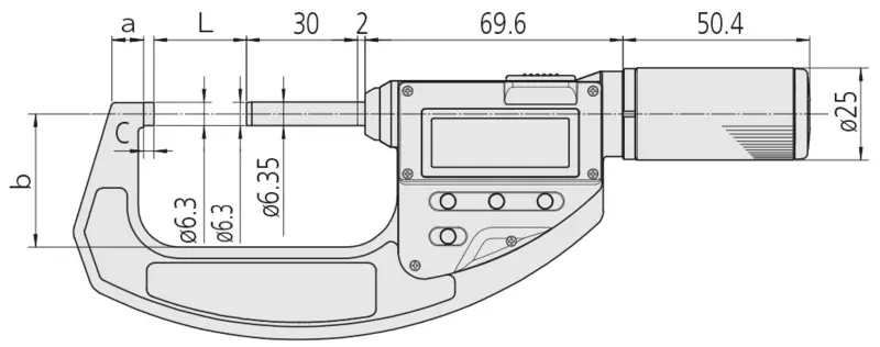 - Larger measuring range - 30 mm compared with 25 mm - than standard micrometer.