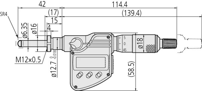 Digital Micrometer Head, IP65 0-25mm, SR4 Spindle, Cla. Nut, 12mm Stem 350-284-30