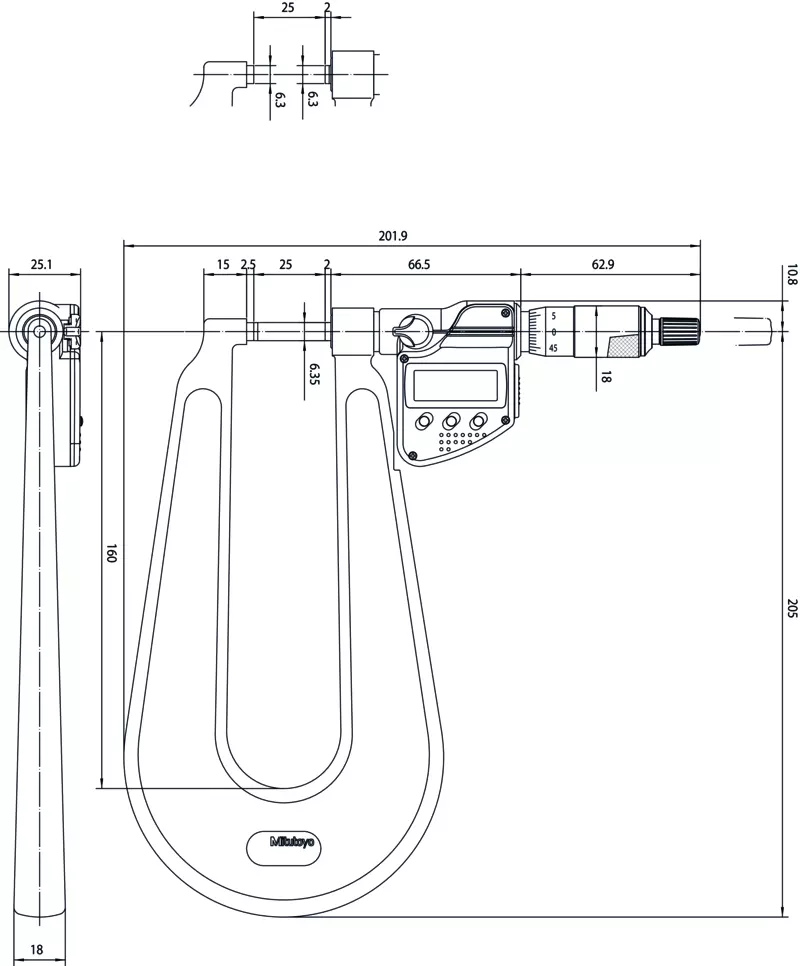 This Digimatic Sheet Metal Micrometer is designed with a deep frame, for measuring the thickness of sheet material.
